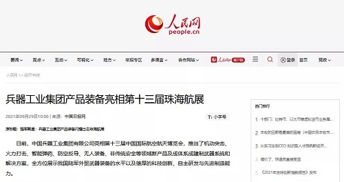 兵器工業(yè)集團(tuán)參展第十三屆中國(guó)航展受到社會(huì)廣泛關(guān)注 |